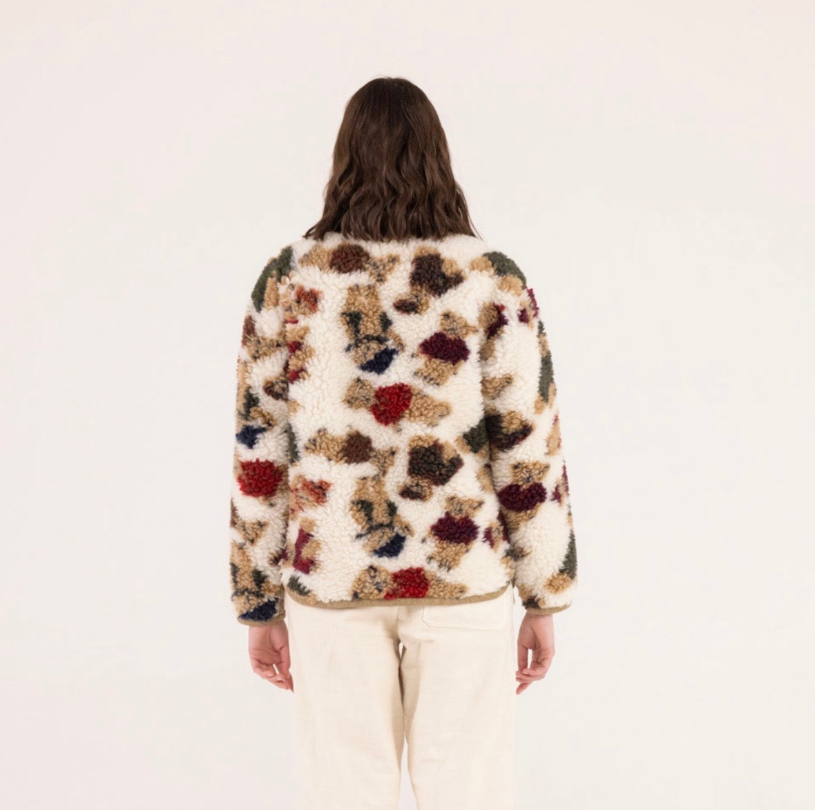Il giubbino teddy Front Street 8 è realizzato in Italia con lavorazione artigianale e dettagli curatissimi. La sua particolarità? La fantasia con dolci orsetti teddy che spuntano tra le trame del peluche, rendendolo unico e inconfondibile.